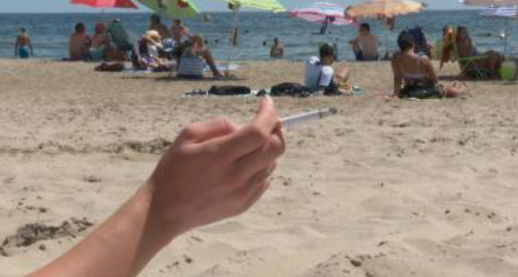 Son las 17:00 horas de un sábado de enero en la Playa Chica de Las Cruces, El Tabo, y la aglomeración de veraneantes se hace notar en una de las pocas playas habilitadas para el baño en el litoral central. Un centenar de quitasoles hace difícil el paso hacia la orilla del mar y mientras se camina se observa sobre la arena algas, restos de medusa y colillas, varias colillas de cigarro. Este escenario típico de zona costera debería a esta altura, y según la ley, estar erradicado.